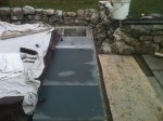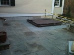 It involved forming an enclosed stone deck complete with stone wall, blue stone patio, and in-ground hot tub.
