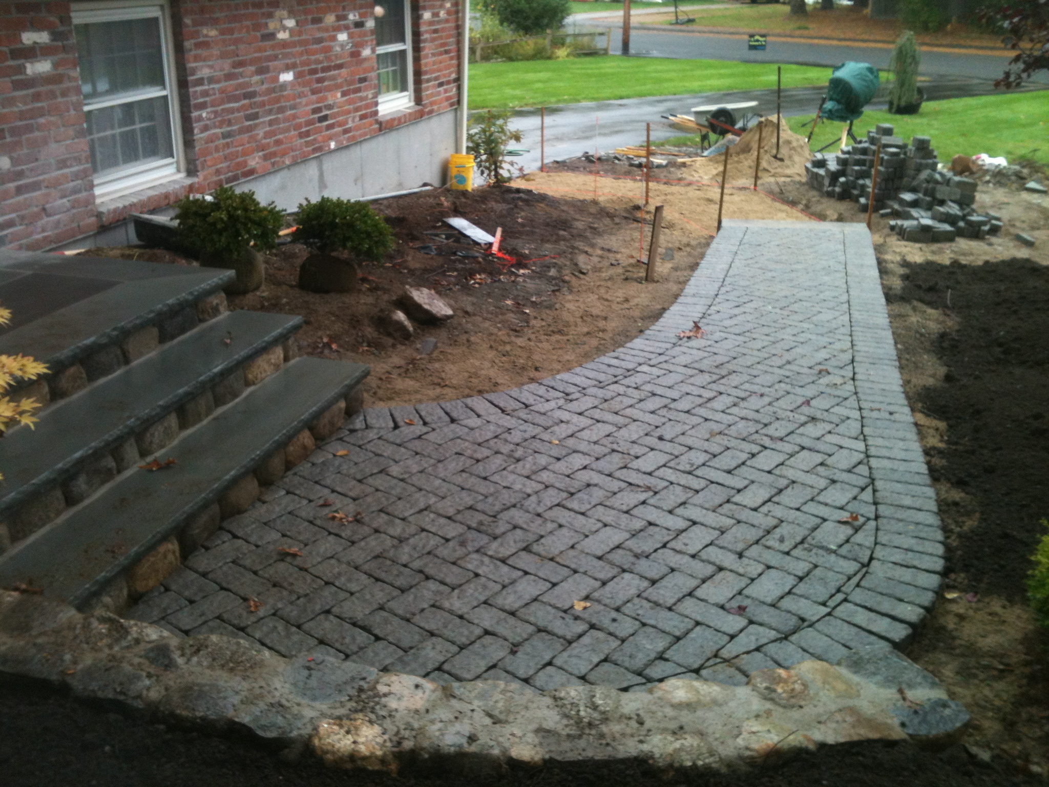 Steps and Walkway Medfield January 12, 2013May 2, 2015 / hnyren Winding brick and granite walkway in Medfield, Massachusetts.