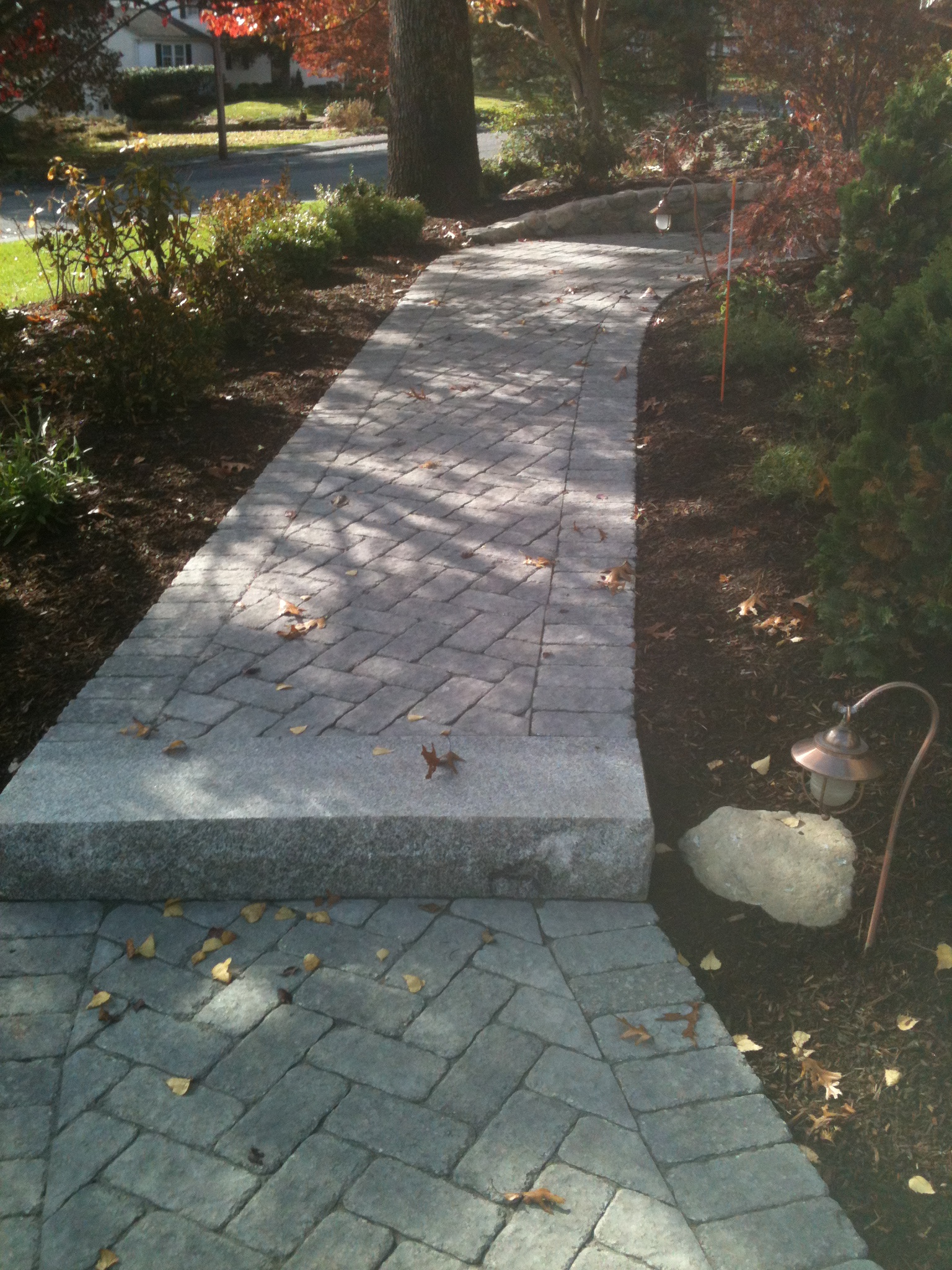 Walkway and Steps Medfield January 12, 2013March 22, 2015 / hnyren Brick and granite steps by Don Nyren Masonry in Medfield, Massachusetts.