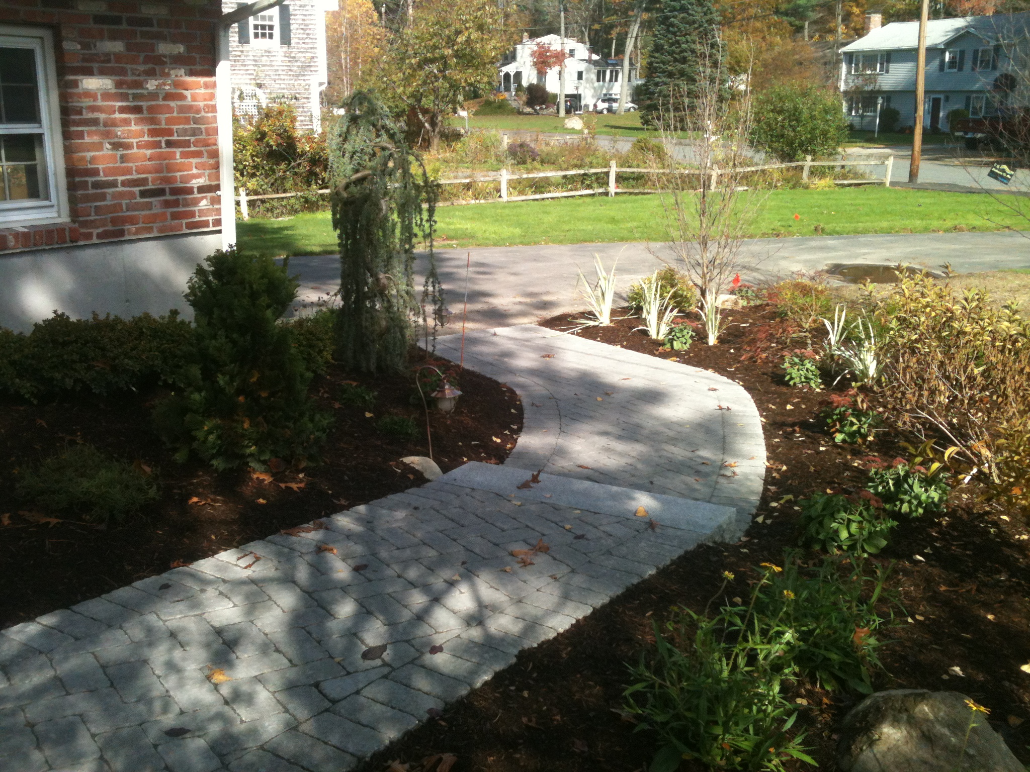 Walkway Medfield January 12, 2013May 2, 2015 / hnyren Winding brick and granite walkway in Medfield, Massachusetts.